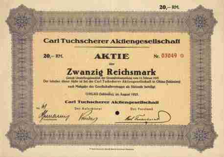 Holzbau-Werke Carl Tuchscherer AG, danach: Carl Tuchscherer AG. Zweigniederlassungen bestanden 1925 in: Berlin, Bremen,