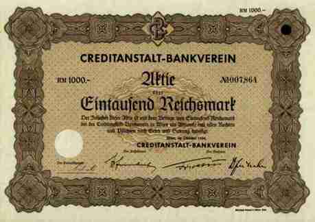 Bereits am 31. Oktober 1855 als “Oesterreichische Credit-Anstalt für Handel und Gewerbe” unter Führung des Hauses Rothschild gegründet. 1934 Fusion mit