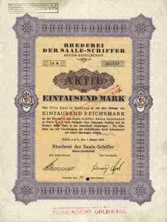| Rhederei der Saale-Schiffer AG | 1000 Mark | Art.Nr.6942 |