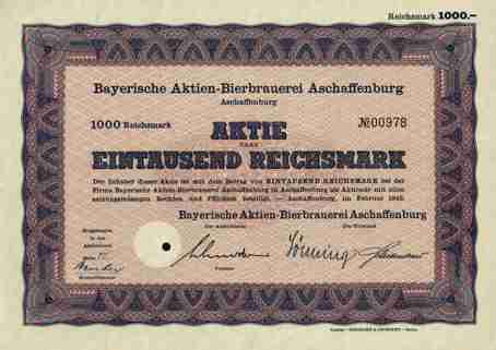Gesellschaftsbrauerei und der Aktienbrauerei zum Hopfengarten, Aschaffenburg, statt, unter gleichzeitigem Zukauf der Bierbrauerei Hch.