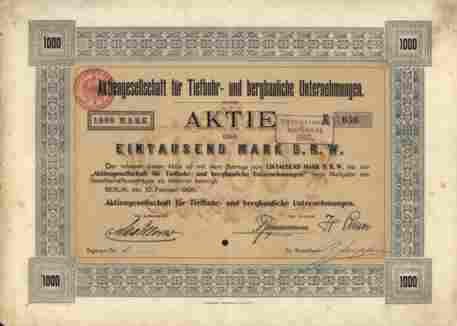 | AG für Tiefbohr und bergbauliche Unternehmungen | 1000 Mark | Art.Nr.4400 |