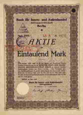 für Mansfeld und Umgebung GmbH. Die Firma lautete bis 1922: Mansfelder Bankverein, AG mit Sitz in Mansfeld, bis 12.5.1931: Bank für Innen- u. Außenhandel AG, danach: Deutsch-Französische