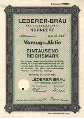 Bierbrauereigesellschaft vorm. Gebrüder Lederer AG, Nürnberg. Brauereibetrieb. Änderung der Firma laut