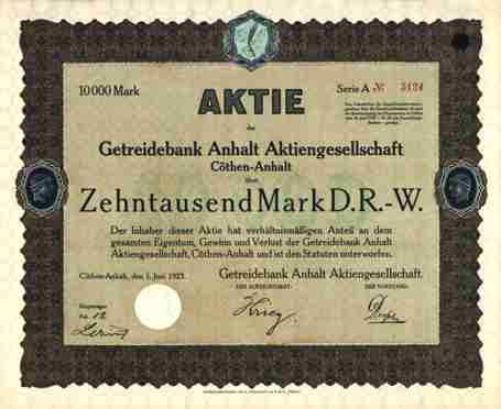 Gründeraktie. Gegründet am 10.9.1923. Förderung und Finanzierung von Geschäften in landwirtschaftlichen Erzeugnissen und Bedarfsstoffen sowie Übernahme