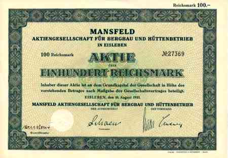 Gegründet 1851. Hervorgegangen aus der Mansfeldschen Kupferschiefer bauenden Gewerkschaft. Herstellung von Metallhalbfabrikaten aus Kupfer, Messing, Tombak, Oroton, Bronze, Neusilber, Kupfernickel, Mansfeld-Silbernickel usw. Tochtergesellschaften und Beteiligungen (1943): 1. Mansfeldscher Kupferschieferbergbau AG, Eisleben. 2. Braunkohlenwerke Salzdetfurth AG, Berlin. 3. Montangesellschaft mbH in Berlin-Charlottenburg. 4. Prinz Carlshütte Eisengießerei und Maschinenbau AG, Rothenburg (Saale). 5. Kurhessischer Kupferschieferbergbau GmbH, Eisleben u.v.a. Großaktionär (1943): Salzdetfurth AG, Berlin (mit ca. 98%). Teilgesellschaft 1948 verlagert nach Hannover, Sitz der Verwaltung in Bad Salzdetfurth. Ab 1967 GmbH. Stammbetrieb Eisleben: Enteignet und als VEB "Mansfeld" weiterbetrieben.