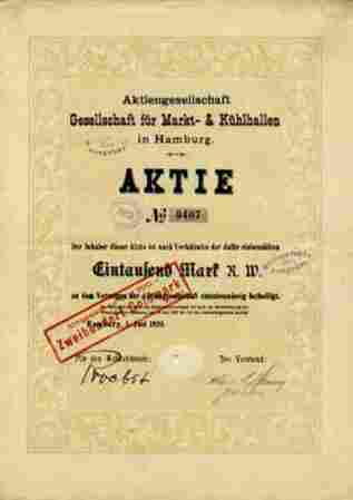 Gründung erfolgte am 25. 01.1890. Errichtung, Erwerb und Betrieb von Kühlhäusern, Eisfabriken, Markthallen, Schlachthöfen und allen Anlagen, in welchen Kälte oder Kälteerzeugnisse hergestellt oder verwandt werden. Sitz bis 1895 Berlin, bis 1909 München, danach Hamburg. 1892/93 Errichtung des Kühlhauses I mit Eisfabrik in Hamburg. 1899/1900 Errichtung des Werkes I in Berlin. 1899 Errichtung des Werkes II in Hamburg; 1906 Errichtung des Werkes III in Altona. Errichtung des Werkes II in Berlin. 1925 Erwerb der Aktien der A.-G. Eiswerke Hamburg, die 1926 durch Fusion vereinigt und als Werk IV weitergeführt wurde. 1929 Das im Freihafen nächst der City vom Hamburger Staat neu errichtete Kühlhaus wurde auf Grund eines langjährigen Pachtvertrages als Werk V in Betrieb genommen. Dazu noch weitere Übernahmen und Eigenbauten. Beteiligungen: 1. Kühltransit-A.-G., Hamburg. 2. Blockeis-Fabrik von Gottfr. Linde G. m. b. H. in Köln. 3. Gefriertechnische Gesellschaft Deutscher Hochseefischereien mbH u.v.a. Heute ist die MUK AG, München Deutschlands führender Tiefkühllogistik-Dienstleister.