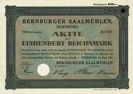 Betrieb der 1888 eingerichteten, von der damaligen Anhaltischen Finanz-Direktion gepachteten Saalemühlen und aller damit in Verbindung stehenden Geschäfte. Die erste