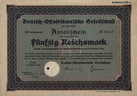 Kolonialpionier in DOA. Diverse Bet. u.a. in Daressalam, Tanga, Sisal, Kaffee, Kopra und Tee produzierend. 1950 Berliner Wertpapierbereinigung. 1971 verlagert nach