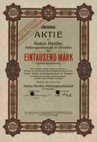 Firma Anton Reiche in Dresden. Die europaweit grösste Fabrik für Gebäck- und Schokoladenformen aus Weissblech beschäftigte bis zu 900 Arbeiter. Die Gesellschaft befand sich zu
