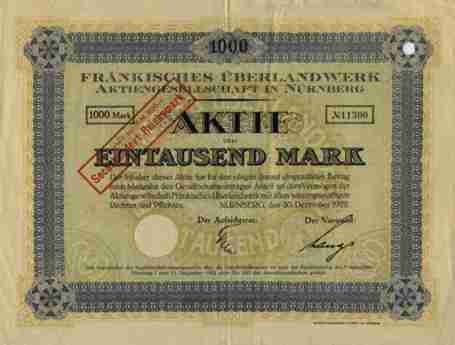 Gegründet am 3.1.1913 unter Übernahme der Fränkischen Überlandzentrale, Nürnberg, vormals betrieben von der Elektrizitäts-AG